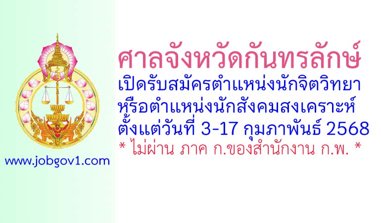 ศาลจังหวัดกันทรลักษ์ รับสมัครตำแหน่งนักจิตวิทยาหรือนักสังคมสงเคราะห์ ตั้งแต่วันที่ 3-17 กุมภาพันธ์ 2568