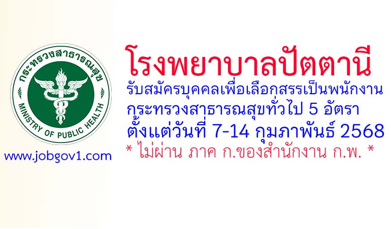 โรงพยาบาลปัตตานี รับสมัครบุคคลเพื่อเลือกสรรเป็นพนักงานกระทรวงสาธารณสุขทั่วไป 5 อัตรา ตั้งแต่วันที่ 7-14 กุมภาพันธ์ 2568