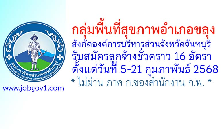 กลุ่มพื้นที่สุขภาพอำเภอขลุง สังกัดองค์การบริหารส่วนจังหวัดจันทบุรี รับสมัครลูกจ้างชั่วคราว 16 อัตรา ตั้งแต่วันที่ 5-21 กุมภาพันธ์ 2568