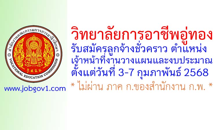 วิทยาลัยการอาชีพอู่ทอง รับสมัครลูกจ้างชั่วคราว ตำแหน่งเจ้าหน้าที่งานวางแผนและงบประมาณ ตั้งแต่วันที่ 3-7 กุมภาพันธ์ 2568