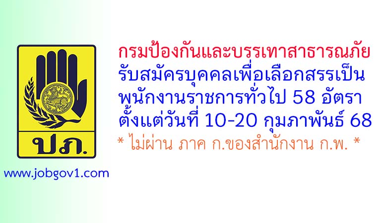 กรมป้องกันและบรรเทาสาธารณภัย รับสมัครบุคคลเพื่อเลือกสรรเป็นพนักงานราชการทั่วไป 58 อัตรา ตั้งแต่วันที่ 10-20 กุมภาพันธ์ 2568