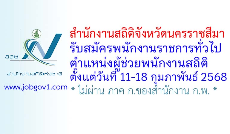 สำนักงานสถิติจังหวัดนครราชสีมา รับสมัครพนักงานราชการทั่วไป ตำแหน่งผู้ช่วยพนักงานสถิติ ตั้งแต่วันที่ 11-18 กุมภาพันธ์ 2568