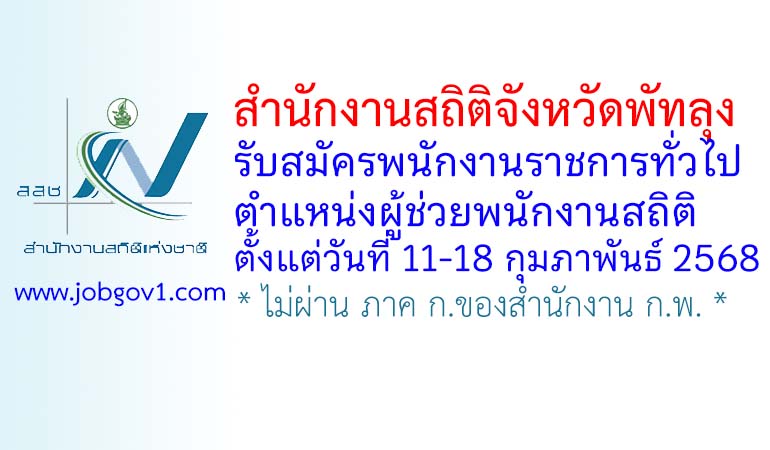 สำนักงานสถิติจังหวัดพัทลุง รับสมัครพนักงานราชการทั่วไป ตำแหน่งผู้ช่วยพนักงานสถิติ ตั้งแต่วันที่ 11-18 กุมภาพันธ์ 2568