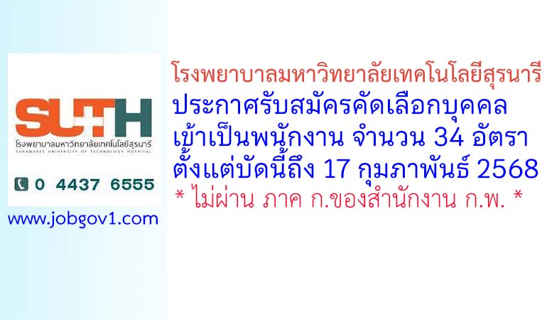 โรงพยาบาลมหาวิทยาลัยเทคโนโลยีสุรนารี รับสมัครคัดเลือกบุคคลเข้าเป็นพนักงาน 34 อัตรา ตั้งแต่บัดนี้ถึง 17 กุมภาพันธ์ 2568