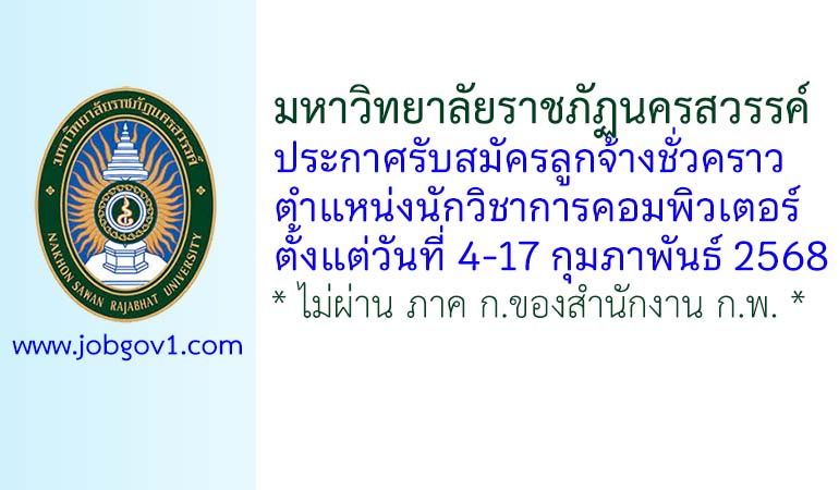 มหาวิทยาลัยราชภัฏนครสวรรค์ รับสมัครลูกจ้างชั่วคราว ตำแหน่งนักวิชาการคอมพิวเตอร์ ตั้งแต่วันที่ 4-17 กุมภาพันธ์ 2568