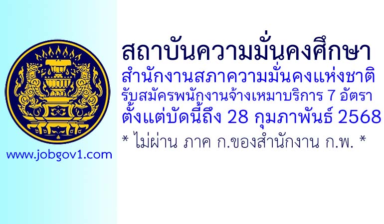 สถาบันความมั่นคงศึกษา สำนักงานสภาความมั่นคงแห่งชาติ รับสมัครพนักงานจ้างเหมาบริการ 7 อัตรา ตั้งแต่บัดนี้ถึง 28 กุมภาพันธ์ 2568