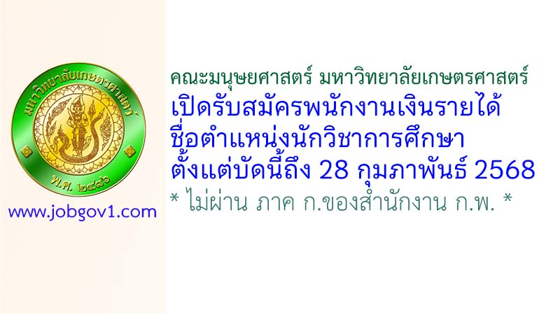 คณะมนุษยศาสตร์ มหาวิทยาลัยเกษตรศาสตร์ รับสมัครพนักงานเงินรายได้ ตำแหน่งนักวิชาการศึกษา ตั้งแต่บัดนี้ถึง 28 กุมภาพันธ์ 2568