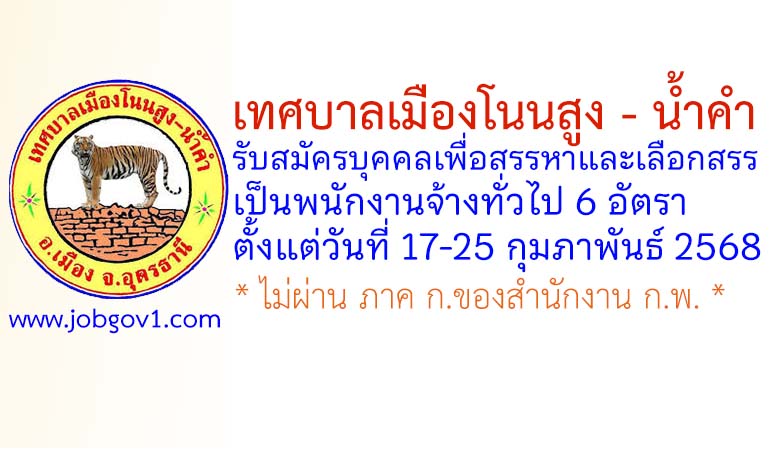 เทศบาลเมืองโนนสูง – น้ำคำ รับสมัครบุคคลเพื่อสรรหาและเลือกสรรเป็นพนักงานจ้างทั่วไป 6 อัตรา ตั้งแต่วันที่ 17-25 กุมภาพันธ์ 2568