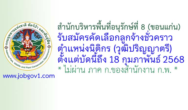 ประกาศสำนักบริหารพื้นที่อนุรักษ์ที่ 8 (ขอนแก่น) เรื่อง รับสมัครคัดเลือกลูกจ้างชั่วคราวรายเดือน จากเงินนอกงบประมาณ (เงินอุทยานแห่งชาติ) ประจำปีงบประมาณ พ.ศ. 2568
