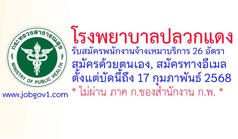 โรงพยาบาลปลวกแดง รับสมัครพนักงานจ้างเหมาบริการ 26 อัตรา ตั้งแต่บัดนี้ถึง 17 กุมภาพันธ์ 2568