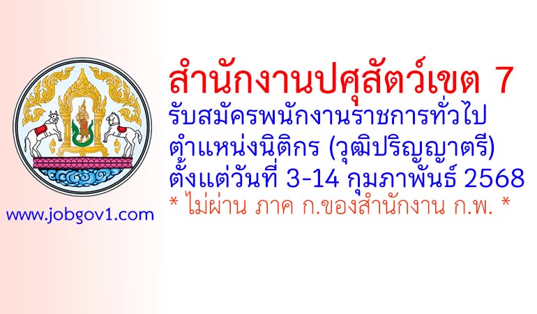 สำนักงานปศุสัตว์เขต 7 รับสมัครพนักงานราชการทั่วไป ตำแหน่งนิติกร ตั้งแต่วันที่ 3-14 กุมภาพันธ์ 2568