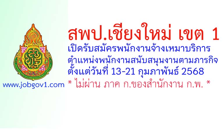 สพป.เชียงใหม่ เขต 1 รับสมัครพนักงานจ้างเหมาบริการ ตำแหน่งพนักงานสนับสนุนงานตามภารกิจ ตั้งแต่วันที่ 13-21 กุมภาพันธ์ 2568