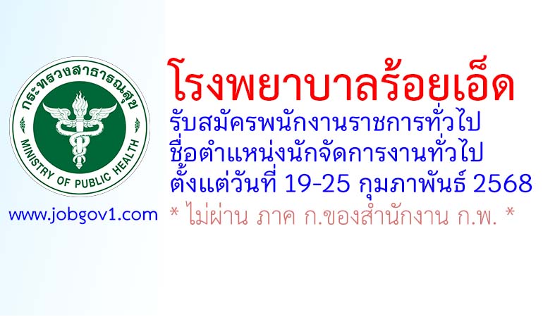 โรงพยาบาลร้อยเอ็ด รับสมัครพนักงานราชการทั่วไป ตำแหน่งนักจัดการงานทั่วไป