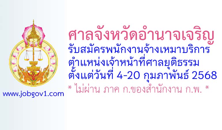 ศาลจังหวัดอำนาจเจริญ รับสมัครพนักงานจ้างเหมาบริการ ตำแหน่งเจ้าหน้าที่ศาลยุติธรรม ตั้งแต่วันที่ 4-20 กุมภาพันธ์ 2568