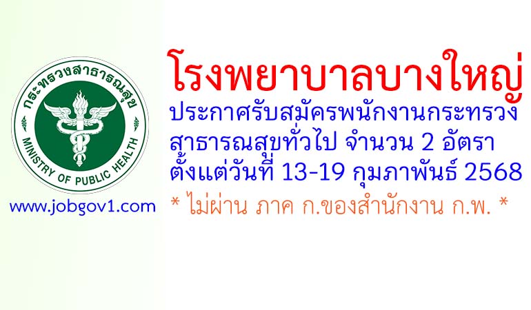 โรงพยาบาลบางใหญ่ รับสมัครพนักงานกระทรวงสาธารณสุขทั่วไป 2 อัตรา ตั้งแต่วันที่ 13-19 กุมภาพันธ์ 2568