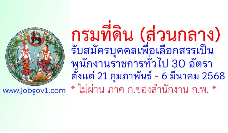 กรมที่ดิน รับสมัครบุคคลเพื่อเลือกสรรเป็นพนักงานราชการทั่วไป 30 อัตรา ตั้งแต่ 21 กุมภาพันธ์ – 6 มีนาคม 2568
