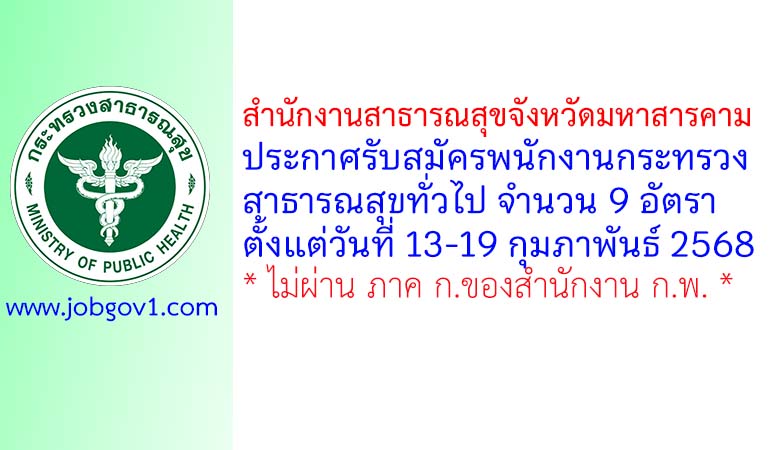 สำนักงานสาธารณสุขจังหวัดมหาสารคาม รับสมัครพนักงานกระทรวงสาธารณสุขทั่วไป 9 อัตรา ตั้งแต่วันที่ 13-19 กุมภาพันธ์ 2568