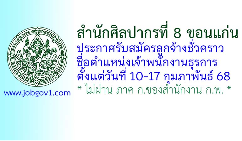 สำนักศิลปากรที่ 8 ขอนแก่น รับสมัครลูกจ้างชั่วคราว ตำแหน่งเจ้าพนักงานธุรการ ตั้งแต่วันที่ 10-17 กุมภาพันธ์ 2568
