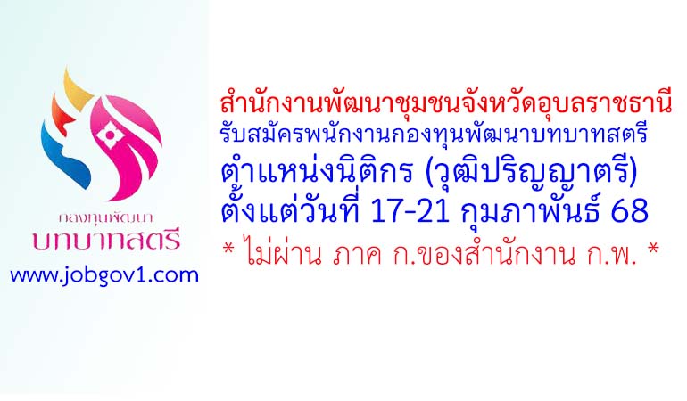 สำนักงานพัฒนาชุมชนจังหวัดอุบลราชธานี รับสมัครพนักงานกองทุนพัฒนาบทบาทสตรี ตำแหน่งนิติกร ตั้งแต่วันที่ 17-21 กุมภาพันธ์ 2568