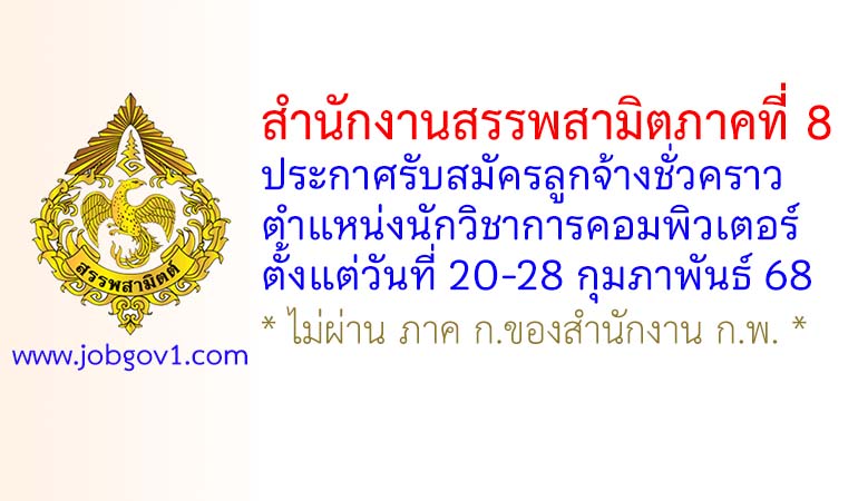 สำนักงานสรรพสามิตภาคที่ 8 รับสมัครลูกจ้างชั่วคราว ตำแหน่งนักวิชาการคอมพิวเตอร์ ตั้งแต่วันที่ 20-28 กุมภาพันธ์ 2568