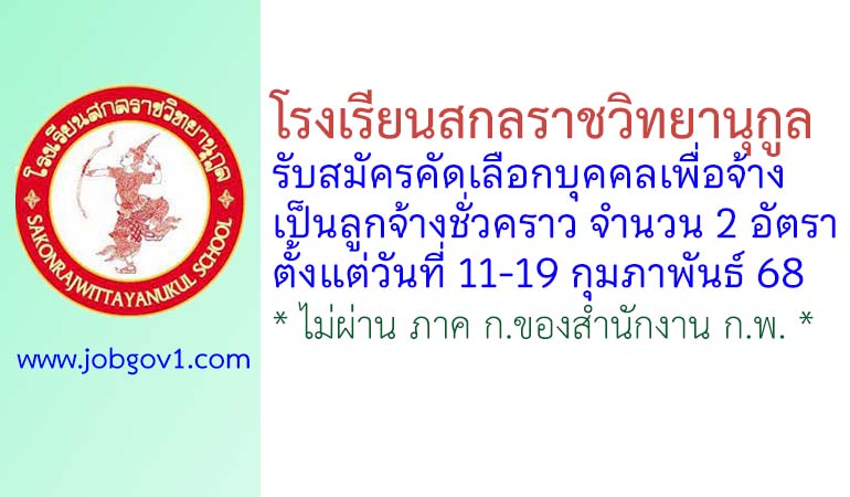 โรงเรียนสกลราชวิทยานุกูล รับสมัครคัดเลือกบุคคลเพื่อจ้างเป็นลูกจ้างชั่วคราว 2 อัตรา ตั้งแต่วันที่ 11-19 กุมภาพันธ์ 2568