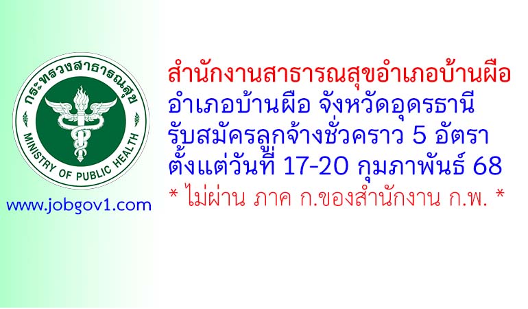 สำนักงานสาธารณสุขอำเภอบ้านผือ รับสมัครลูกจ้างชั่วคราว 5 อัตรา ตั้งแต่วันที่ 17-20 กุมภาพันธ์ 2568