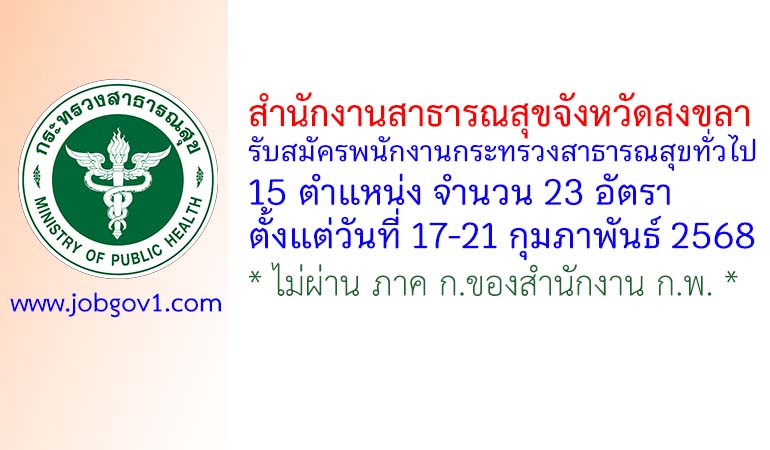 สำนักงานสาธารณสุขจังหวัดสงขลา รับสมัครพนักงานกระทรวงสาธารณสุขทั่วไป 23 อัตรา ตั้งแต่วันที่ 17-21 กุมภาพันธ์ 2568
