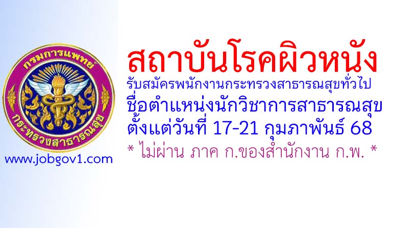 สถาบันโรคผิวหนัง รับสมัครพนักงานกระทรวงสาธารณสุขทั่วไป ตำแหน่งนักวิชาการสาธารณสุข ตั้งแต่วันที่ 17-21 กุมภาพันธ์ 2568