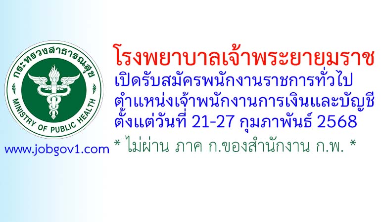 โรงพยาบาลเจ้าพระยายมราช รับสมัครพนักงานราชการทั่วไป ตำแหน่งเจ้าพนักงานการเงินและบัญชี ตั้งแต่วันที่ 21-27 กุมภาพันธ์ 2568