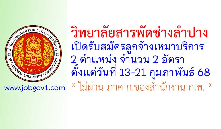 วิทยาลัยสารพัดช่างลำปาง รับสมัครลูกจ้างเหมาบริการ 2 อัตรา ตั้งแต่วันที่ 13-21 กุมภาพันธ์ 2568
