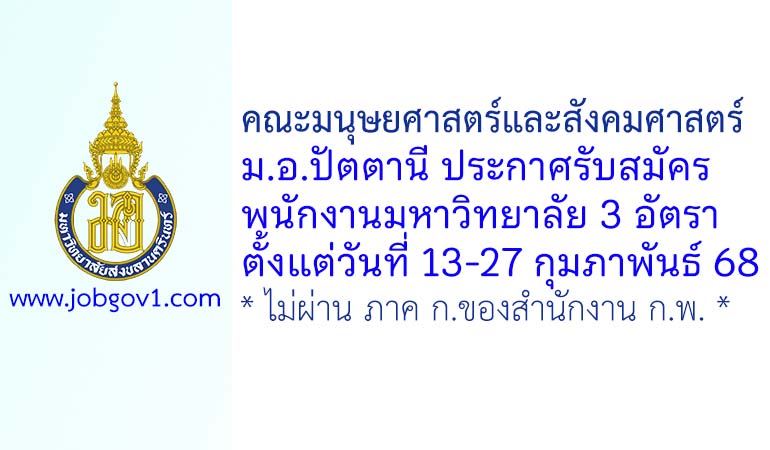 คณะมนุษยศาสตร์และสังคมศาสตร์ ม.อ.ปัตตานี รับสมัครพนักงานมหาวิทยาลัย 3 อัตรา ตั้งแต่วันที่ 13-27 กุมภาพันธ์ 2568