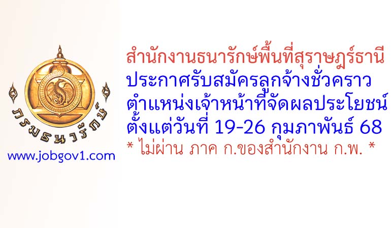 สำนักงานธนารักษ์พื้นที่สุราษฎร์ธานี รับสมัครลูกจ้างชั่วคราว ตำแหน่งเจ้าหน้าที่จัดผลประโยชน์ ตั้งแต่วันที่ 19-26 กุมภาพันธ์ 2568