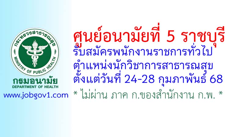 ศูนย์อนามัยที่ 5 ราชบุรี รับสมัครพนักงานราชการทั่วไป ตำแหน่งนักวิชาการสาธารณสุข ตั้งแต่วันที่ 24-28 กุมภาพันธ์ 2568