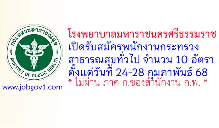 โรงพยาบาลมหาราชนครศรีธรรมราช รับสมัครพนักงานกระทรวงสาธารณสุขทั่วไป 10 อัตรา ตั้งแต่วันที่ 24-28 กุมภาพันธ์ 2568