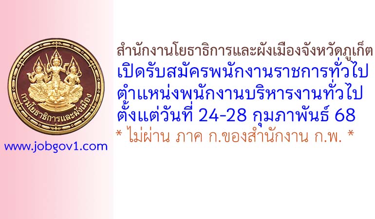 สำนักงานโยธาธิการและผังเมืองจังหวัดภูเก็ต รับสมัครพนักงานราชการทั่วไป ตำแหน่งพนักงานบริหารงานทั่วไป