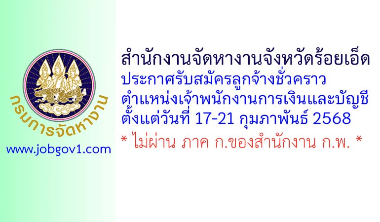 สำนักงานจัดหางานจังหวัดร้อยเอ็ด รับสมัครลูกจ้างชั่วคราว ตำแหน่งเจ้าพนักงานการเงินและบัญชี ตั้งแต่วันที่ 17-21 กุมภาพันธ์ 2568