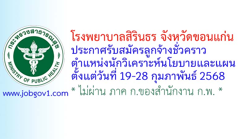 โรงพยาบาลสิรินธร จังหวัดขอนแก่น รับสมัครลูกจ้างชั่วคราว ตำแหน่งนักวิเคราะห์นโยบายและแผน ตั้งแต่วันที่ 19-28 กุมภาพันธ์ 2568