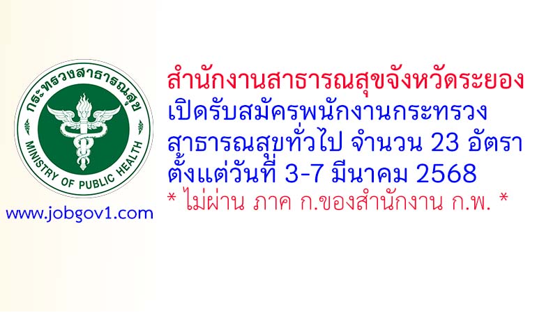 สำนักงานสาธารณสุขจังหวัดระยอง รับสมัครพนักงานกระทรวงสาธารณสุขทั่วไป 23 อัตรา ตั้งแต่วันที่ 3-7 มีนาคม 2568