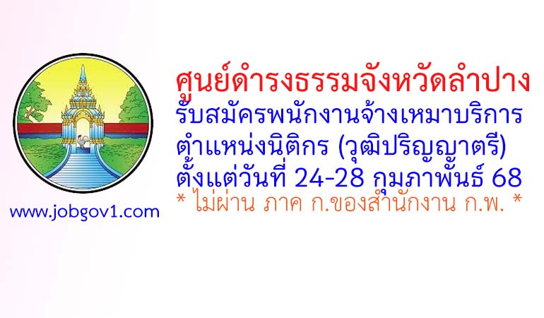 ศูนย์ดำรงธรรมจังหวัดลำปาง รับสมัครพนักงานจ้างเหมาบริการ ตำแหน่งนิติกร ตั้งแต่วันที่ 24-28 กุมภาพันธ์ 2568