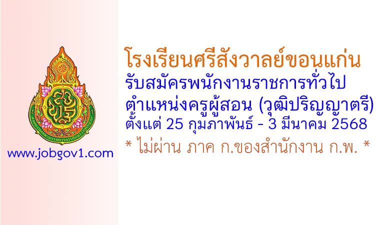 โรงเรียนศรีสังวาลย์ขอนแก่น รับสมัครพนักงานราชการทั่วไป ตำแหน่งครูผู้สอน ตั้งแต่ 25 กุมภาพันธ์ – 3 มีนาคม 2568
