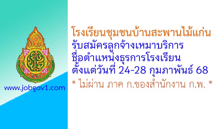 โรงเรียนชุมชนบ้านสะพานไม้แก่น รับสมัครลูกจ้างเหมาบริการ ตำแหน่งธุรการโรงเรียน ตั้งแต่วันที่ 24-28 กุมภาพันธ์ 2568