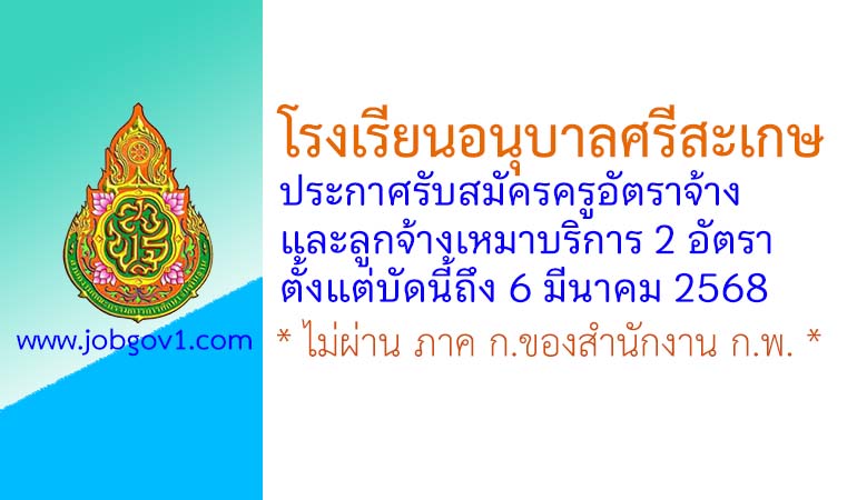 โรงเรียนอนุบาลศรีสะเกษ รับสมัครครูอัตราจ้าง และลูกจ้างเหมาบริการ 2 อัตรา ตั้งแต่บัดนี้ถึง 6 มีนาคม 2568