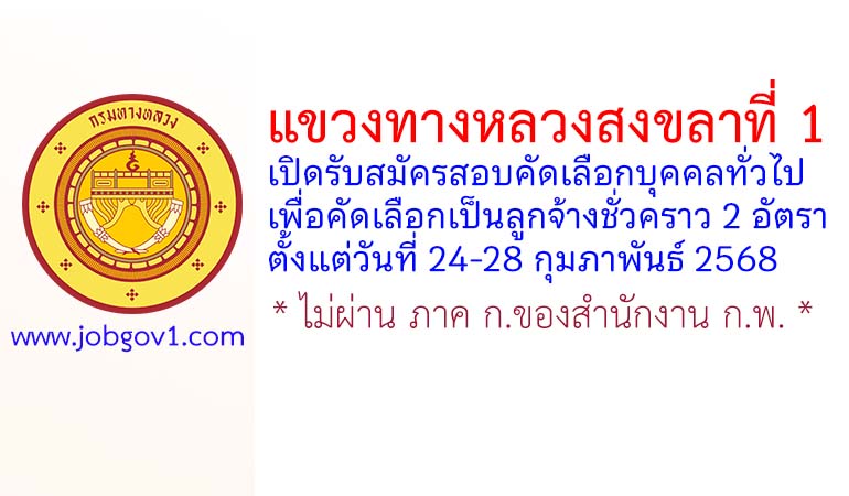 แขวงทางหลวงสงขลาที่ 1 รับสมัครลูกจ้างชั่วคราว 2 อัตรา ตั้งแต่วันที่ 24-28 กุมภาพันธ์ 2568