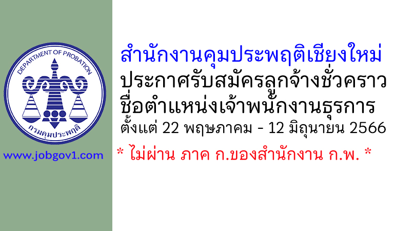 สำนักงานคุมประพฤติเชียงใหม่ รับสมัครลูกจ้างชั่วคราว ตำแหน่งเจ้าพนักงานธุรการ ตั้งแต่ 22 พฤษภาคม – 12 มิถุนายน 2566