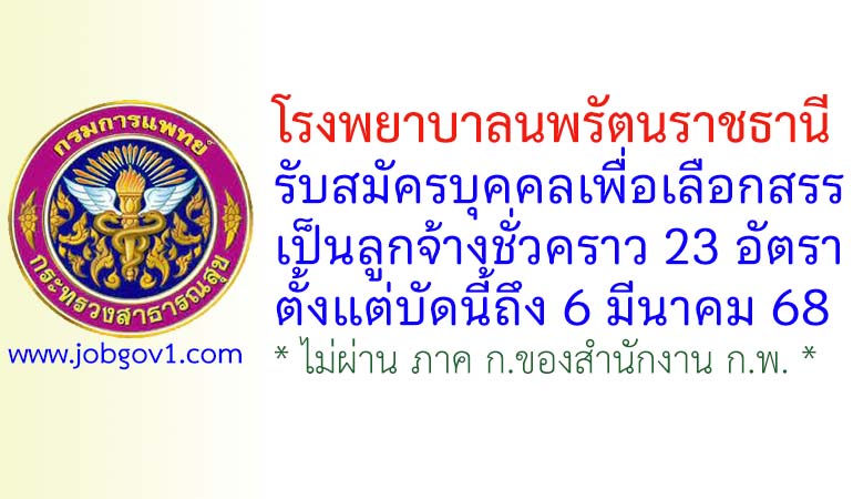 โรงพยาบาลนพรัตนราชธานี รับสมัครบุคคลเพื่อเลือกสรรเป็นลูกจ้างชั่วคราว 23 อัตรา ตั้งแต่บัดนี้ถึง 6 มีนาคม 2568