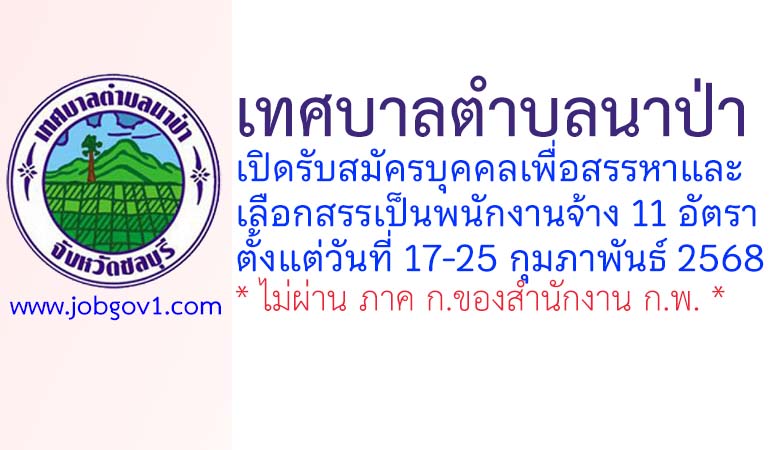เทศบาลตำบลนาป่า รับสมัครบุคคลเพื่อสรรหาและเลือกสรรเป็นพนักงานจ้าง 11 อัตรา ตั้งแต่วันที่ 17-25 กุมภาพันธ์ 2568