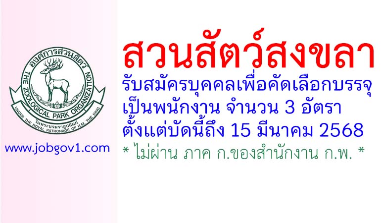 สวนสัตว์สงขลา รับสมัครบุคคลเพื่อคัดเลือกบรรจุเป็นพนักงาน 3 อัตรา ตั้งแต่บัดนี้ถึง 15 มีนาคม 2568