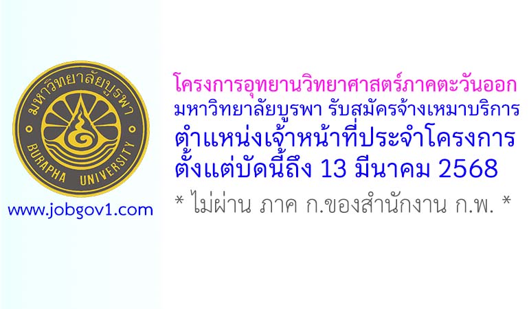 โครงการอุทยานวิทยาศาสตร์ภาคตะวันออก มหาวิทยาลัยบูรพา รับสมัครบุคคลเพื่อจ้างเหมาบริการ ตำแหน่งเจ้าหน้าที่ประจำโครงการ ตั้งแต่บัดนี้ถึง 13 มีนาคม 2568