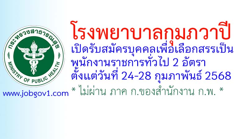 โรงพยาบาลกุมภวาปี รับสมัครบุคคลเพื่อเลือกสรรเป็นพนักงานราชการทั่วไป 2 อัตรา ตั้งแต่วันที่ 24-28 กุมภาพันธ์ 2568