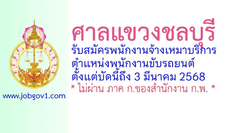 ศาลแขวงชลบุรี รับสมัครจ้างเหมาบริการรายบุคคล ตำแหน่งพนักงานขับรถยนต์ ตั้งแต่บัดนี้ถึง 3 มีนาคม 2568